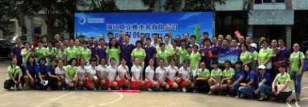 早上8點,米鋪水廠籃球場上真可謂是熱火朝天,參加比賽的隊員們個個摩拳擦掌、躍躍欲試、熱情高漲。首先開始個人賽比拼,跳繩高手們紛紛亮出自己的看家本領,他們在繩間輕盈的跳躍,有雙腳并跳的,有單腳輪跳的,有向前甩繩的,也有向后甩繩的……無論哪種姿勢都展現(xiàn)了海口威立雅人的朝氣與活力。比賽過程中充滿歡笑聲、鼓掌聲和喝彩聲。石立新總經(jīng)理親自上陣參加男子單人跳繩比賽,身輕如燕的跳躍給參賽隊員們帶來了極大的鼓勵;客戶服務部的男將周詩義霸氣十足,整個過程迅速而流暢,隨著場內(nèi)同事們的數(shù)數(shù)聲“180、181……183”“哇哦!”的一聲,全場響起歡呼聲,大家為他打破去年170次紀錄的好成績而沸騰起來!女將們也不甘示弱,去年的女子單人跳冠軍得主蔡玉婷憑借她出色的實力,以零失誤170次的好成績,蟬聯(lián)女子單人跳繩冠軍。
