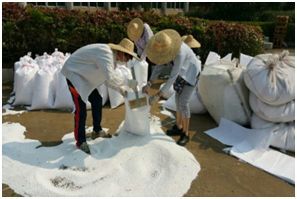 工作中大家頂著烈日、冒著酷暑搬運濾料,公司領(lǐng)導(dǎo)和各部門經(jīng)理也親自上場,為公司員工樹立了良好的榜樣。經(jīng)過大家的齊心協(xié)力,共同努力奮戰(zhàn),僅4天便完成了30噸濾料投放。