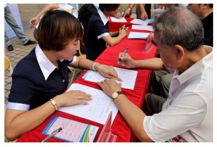 市民在填寫(xiě)世界水日調(diào)查問(wèn)卷
