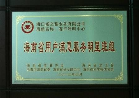 “海南省用戶滿意服務(wù)明星班組”獎牌