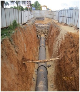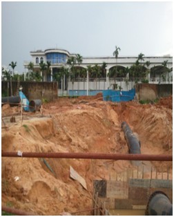 國興大道西段南側(cè)DN1400、DN1200供水管道遷移改造工程是由??谛鲁菂^(qū)建設(shè)開發(fā)有限公司和海口威立雅水務(wù)有限公司共同投資建設(shè)的重點管網(wǎng)工程。工程從2011年6月開始建設(shè),全長2137米,其中DN1400管長740米,DN1200管長1397米,是米鋪水廠通往龍昆南方向的供水主管道,全部用球墨管和鋼板管敷設(shè)完成。