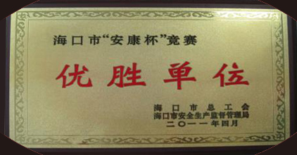 5月18日,我司被??谑锌偣?huì)和??谑邪踩a(chǎn)監(jiān)督管理局授予海口市“安康杯”競(jìng)賽優(yōu)勝單位,這是我司第一次榮獲“安康杯”競(jìng)賽優(yōu)勝單位稱(chēng)號(hào)。
