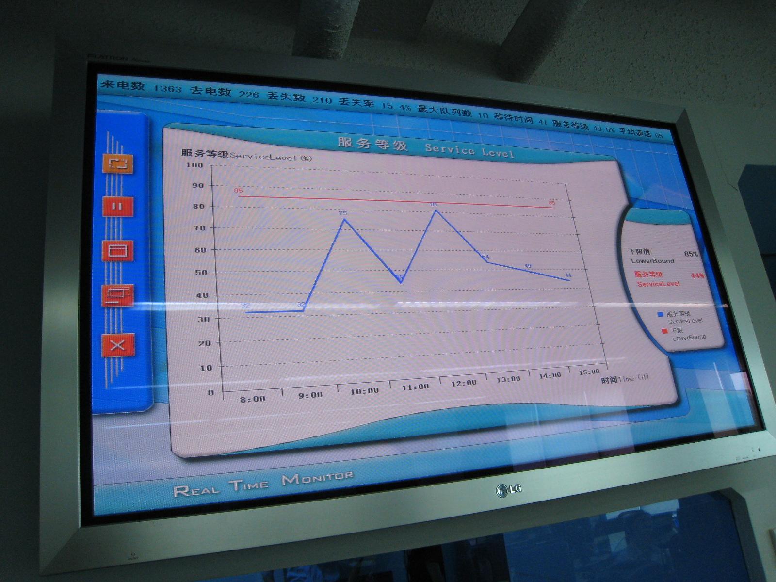 在公司領(lǐng)導(dǎo)對(duì)客戶呼叫中心價(jià)值的高度重視下,公司于09年7月25日與上海三高計(jì)算機(jī)股份有限公司簽定了更換呼叫熱線系統(tǒng)的合同,為更大化地發(fā)揮客戶呼叫中心的價(jià)值提供了有效平臺(tái),同時(shí)新系統(tǒng)配備的話務(wù)電子屏也直觀地展示了客戶呼叫中心的各項(xiàng)話務(wù)指標(biāo)和整體話務(wù)情況,為更好地進(jìn)行現(xiàn)場(chǎng)管理及監(jiān)控提供了先進(jìn)工具。合同約定新系統(tǒng)開發(fā)從8月1日開始,歷時(shí)3個(gè)半月完成。