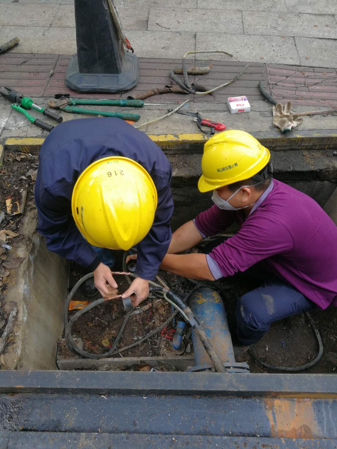 2月1號(hào)下午,南海大道臺(tái)灣大廈前DN800管發(fā)生爆管。漏點(diǎn)處管道被各式各樣的纜線纏繞,搶修人員憑借著豐富的實(shí)戰(zhàn)經(jīng)驗(yàn),圓滿完成搶修任務(wù)。