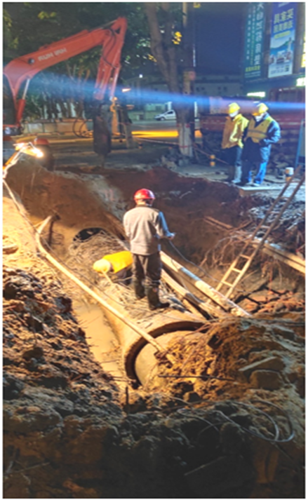 1月28日,南海大道國(guó)度城一期門前發(fā)生DN800管爆管。維修隊(duì)伍從2020年1月28日8點(diǎn)至2020年1月29日凌晨4點(diǎn),連續(xù)作戰(zhàn)20多個(gè)小時(shí),克服低溫和疲勞,成功修復(fù)該爆管。