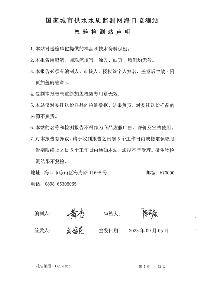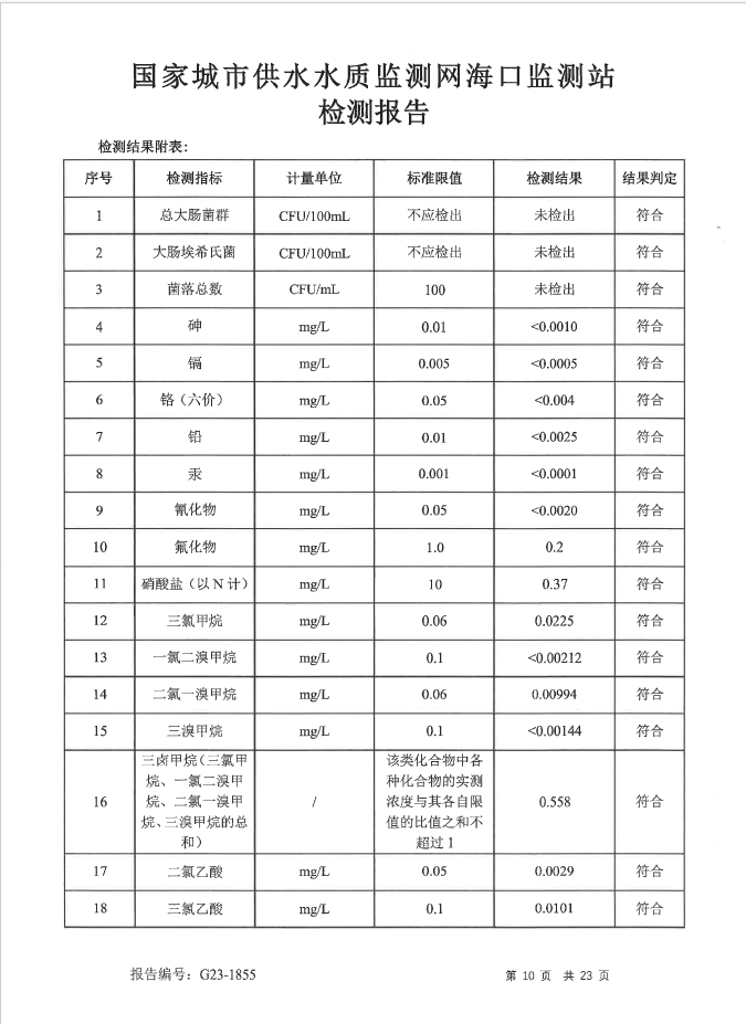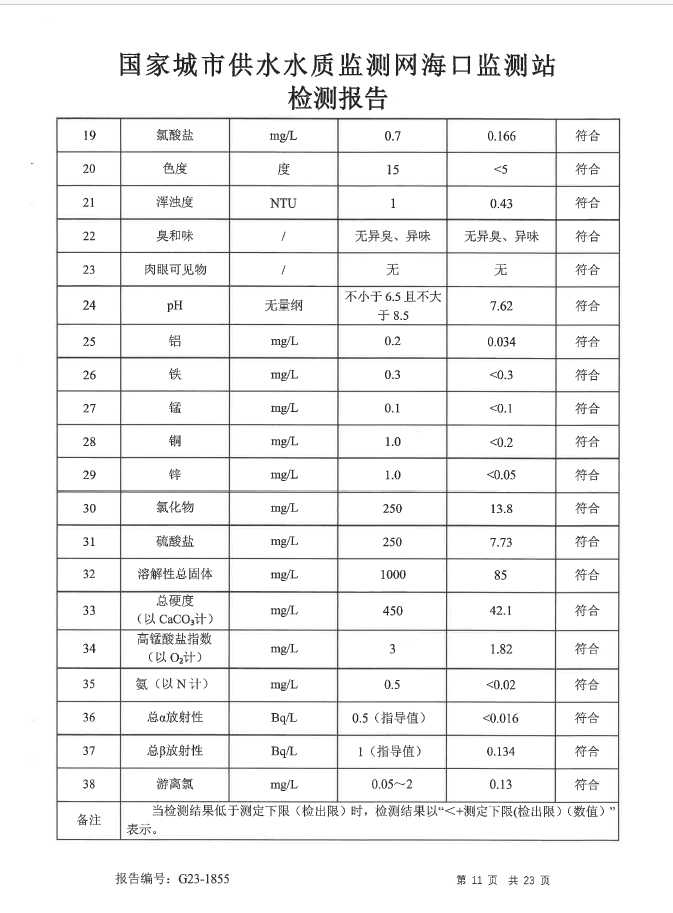 水質(zhì)報告