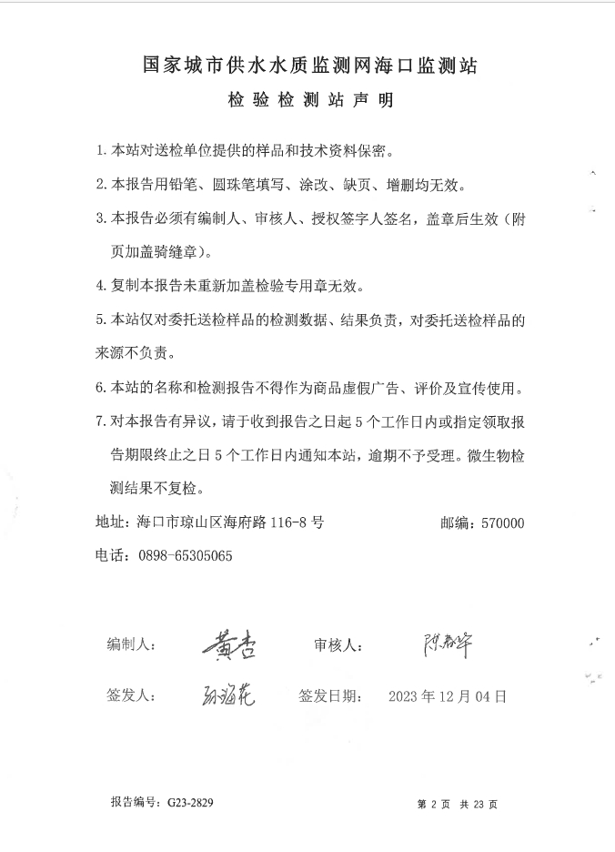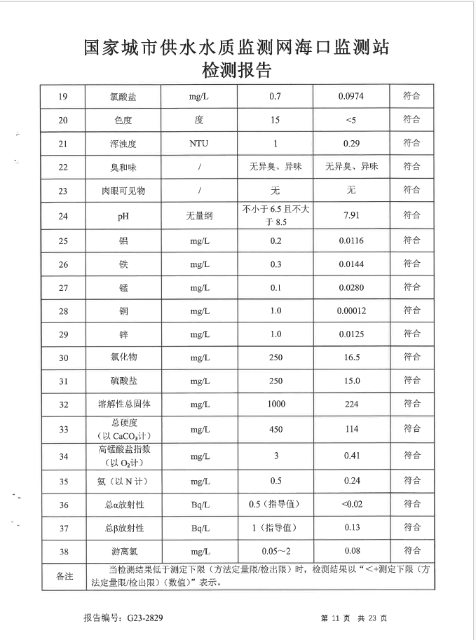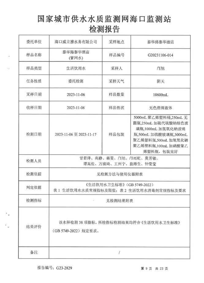 2023年11月??谕⒀潘畡沼邢薰竟芫W水水質檢測月檢報告