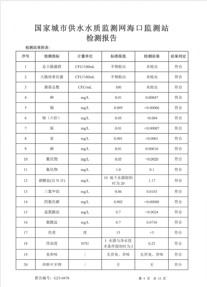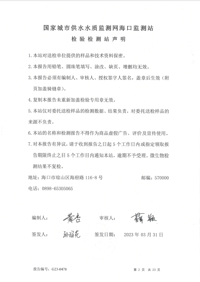 2023年3月??谕⒀潘畡?wù)有限公司米鋪水廠出廠水水質(zhì)檢測月檢報告