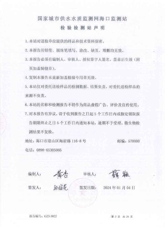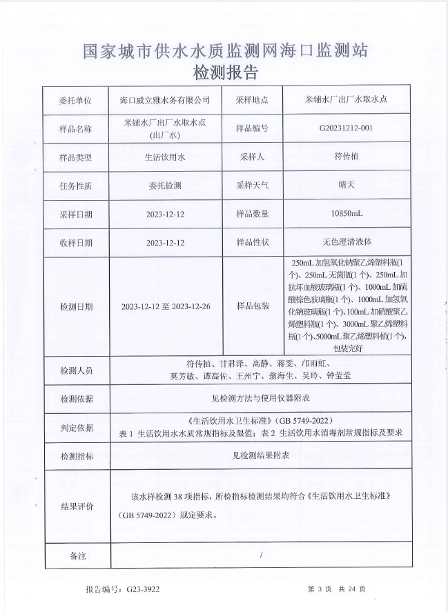 2023年12月??谕⒀潘畡沼邢薰久卒佀畯S出廠水水質檢測月檢報告