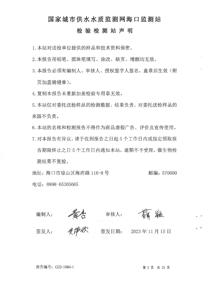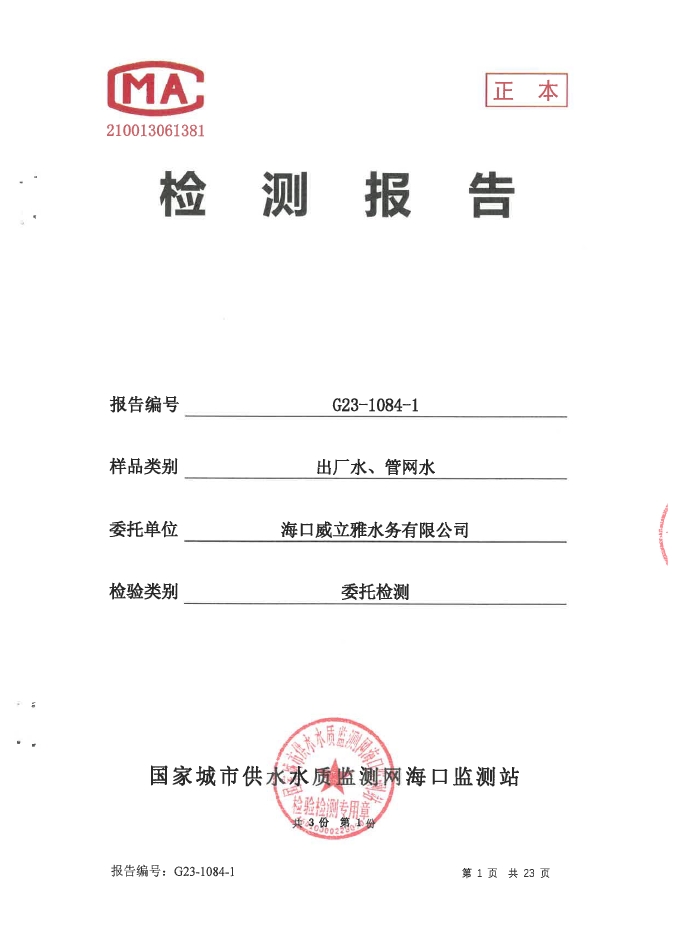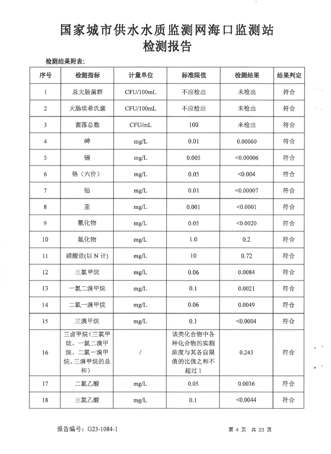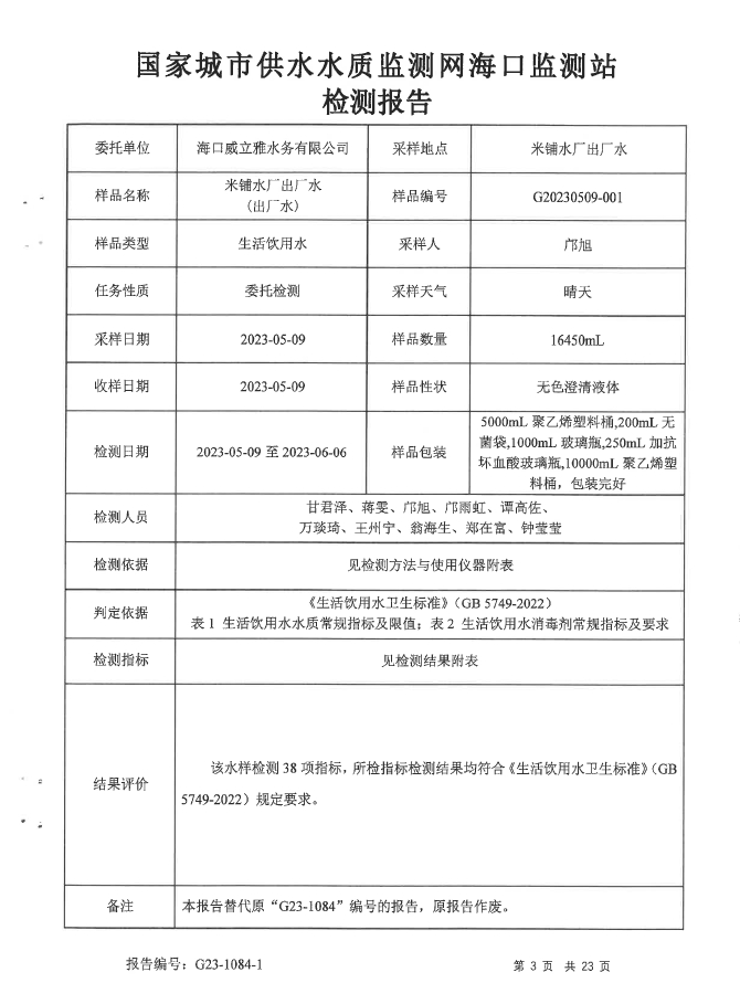 2023年5月??谕⒀潘畡?wù)有限公司米鋪水廠出廠水水質(zhì)檢測月檢報告