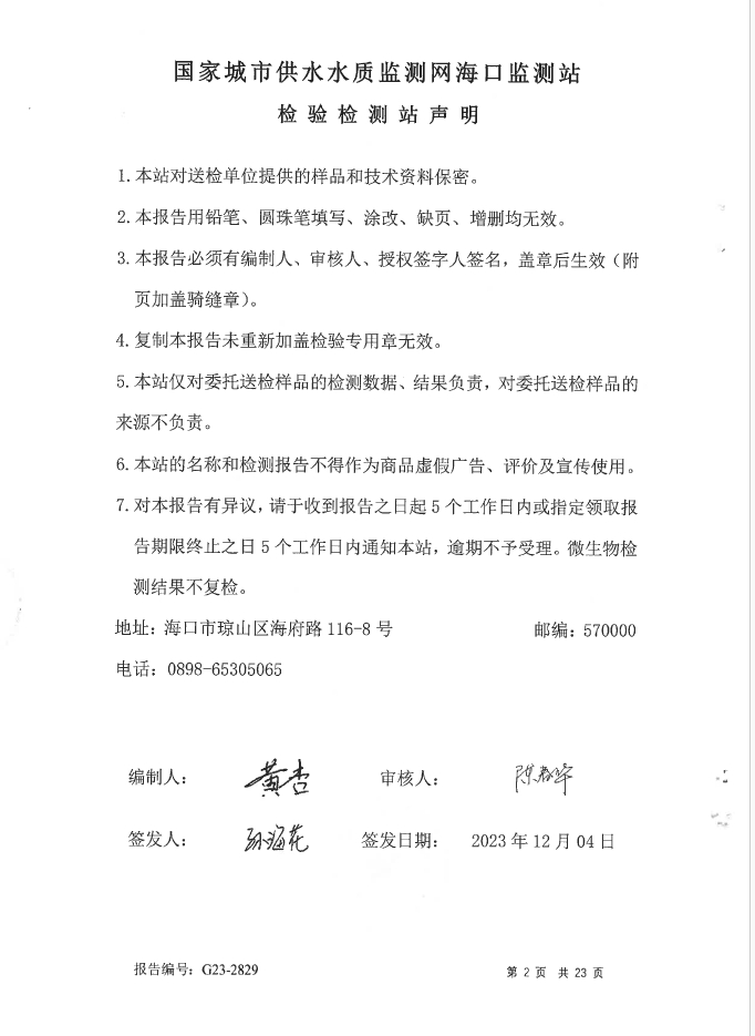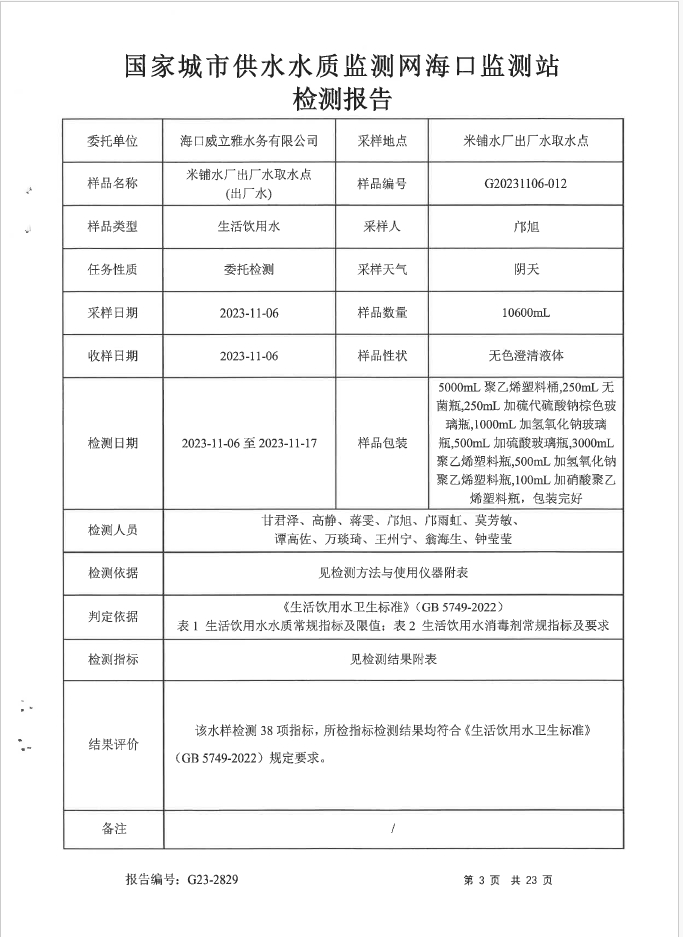 2023年11月??谕⒀潘畡?wù)有限公司米鋪水廠出廠水水質(zhì)檢測月檢報(bào)告
