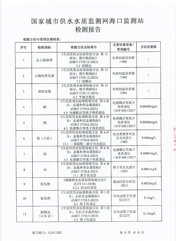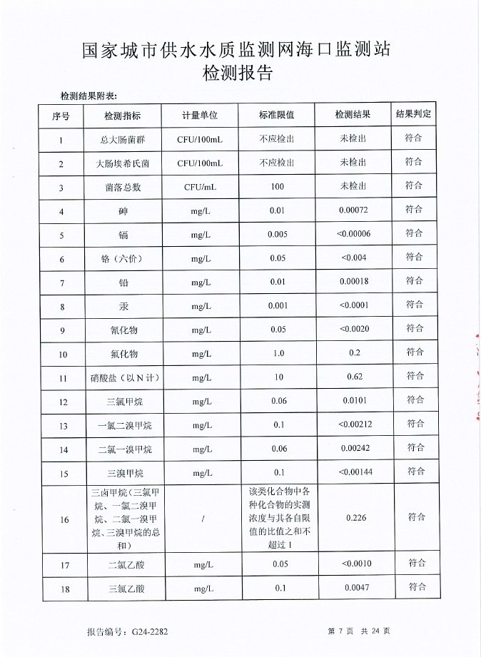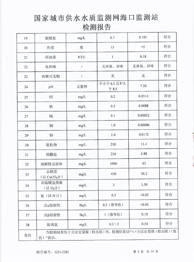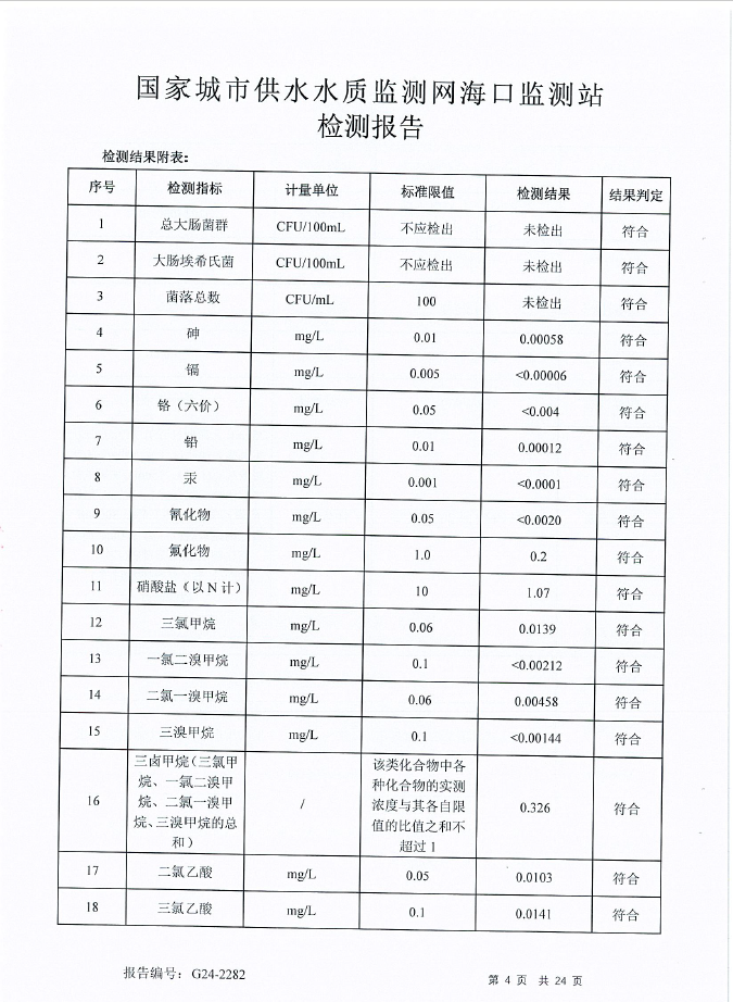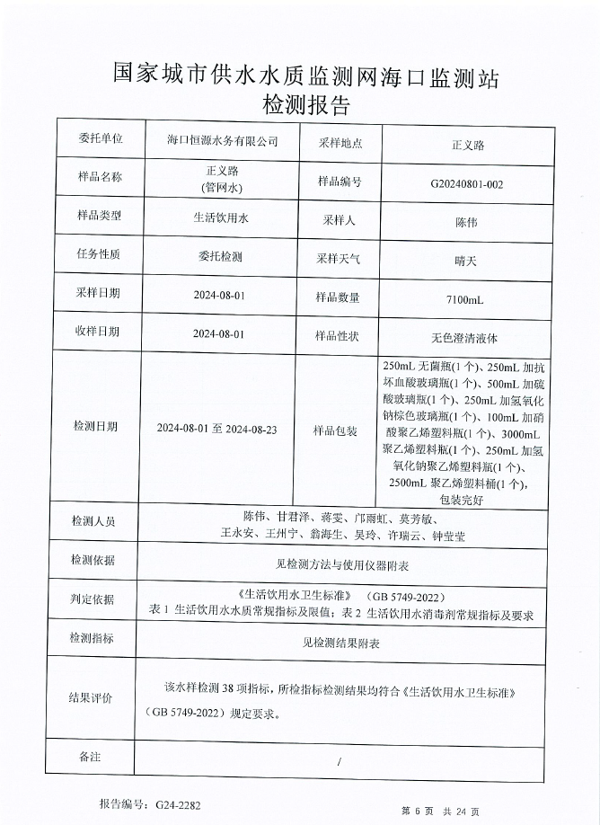 2024年8月恒源水務有限公司米鋪水廠出廠水、管網(wǎng)水月檢報告