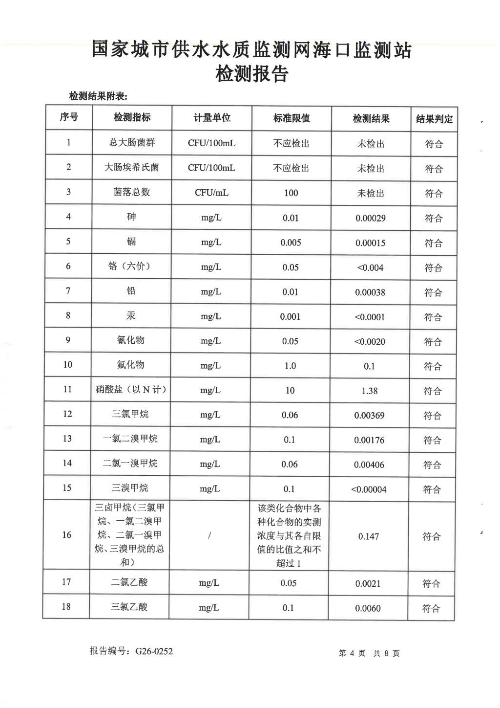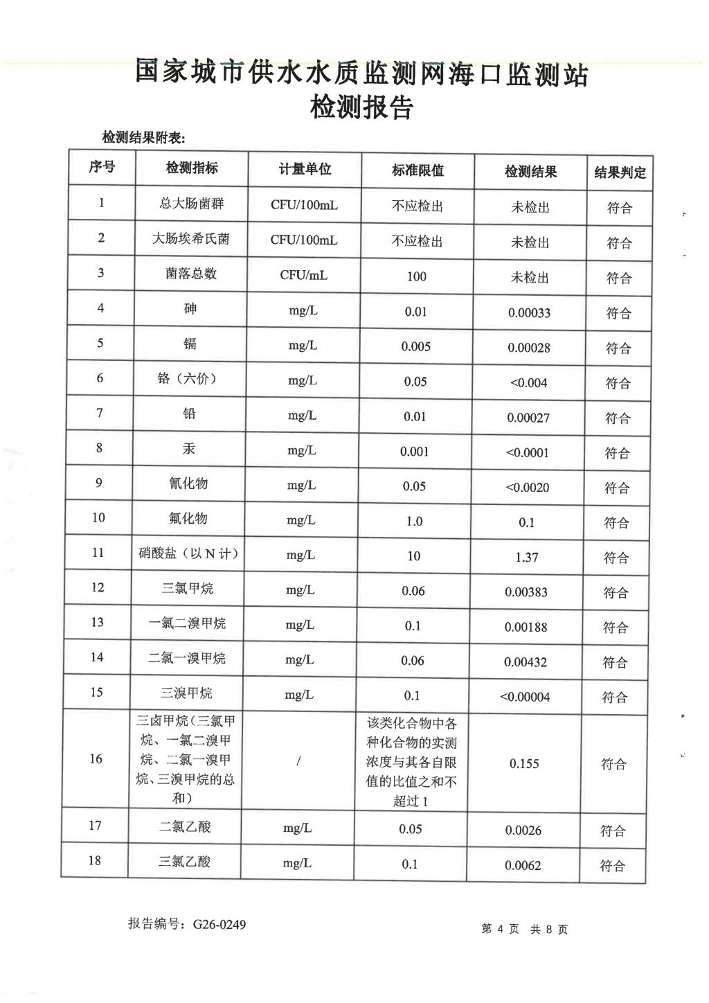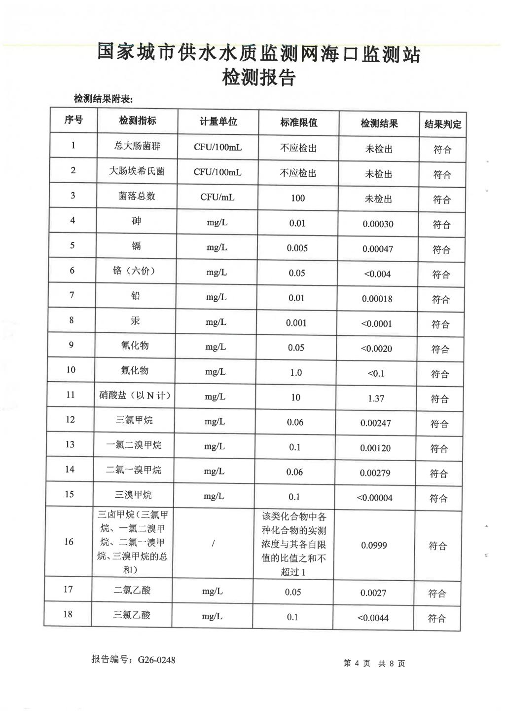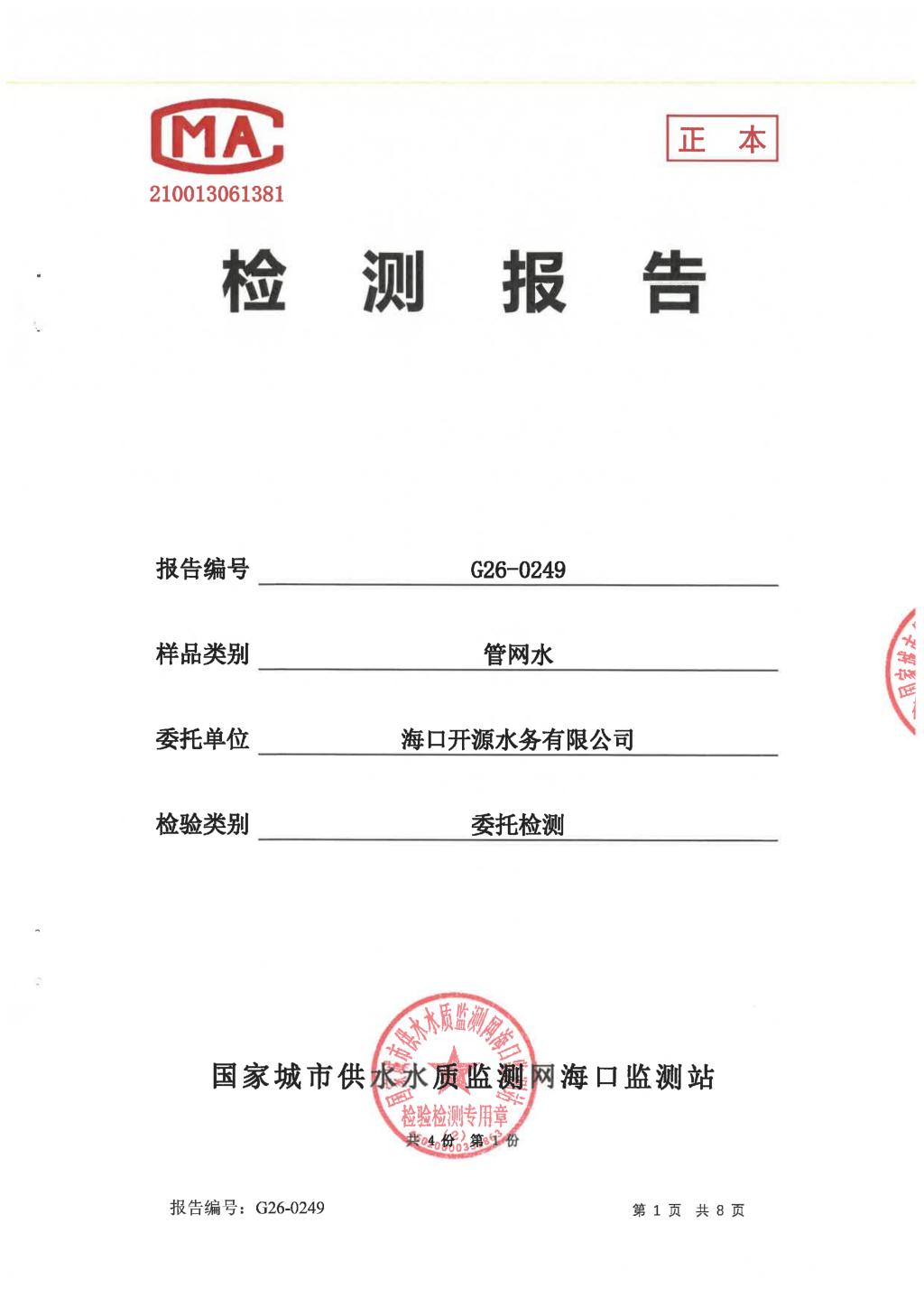 水質(zhì)報告