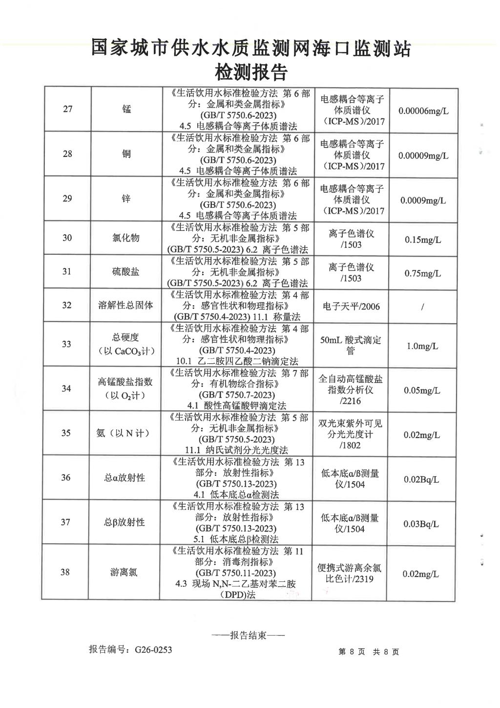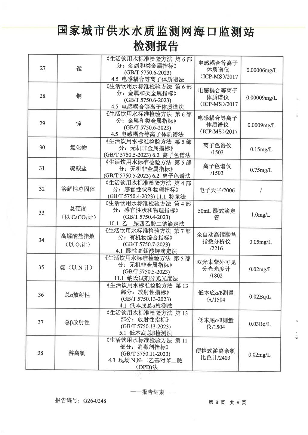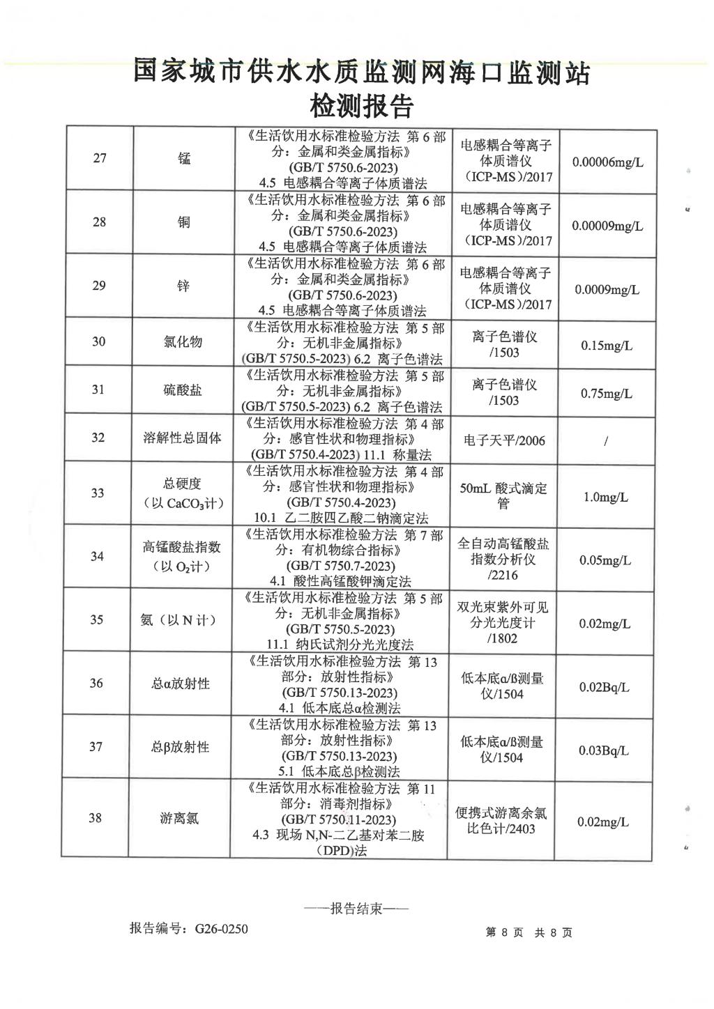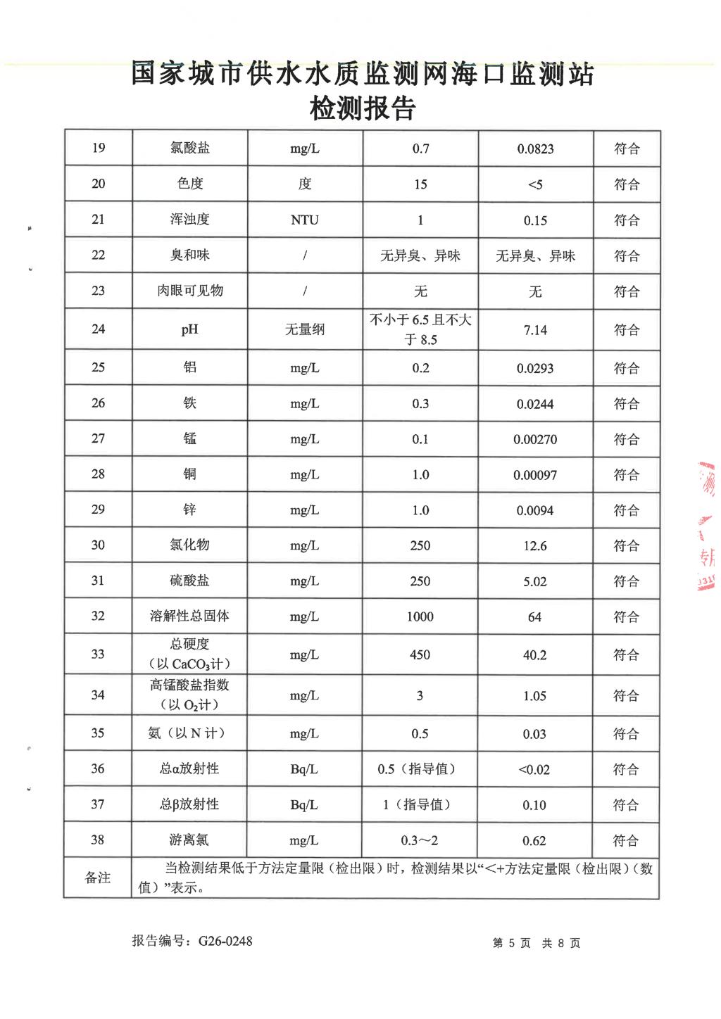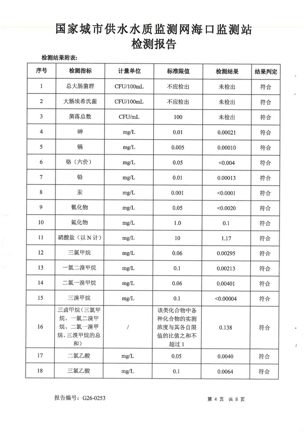 水質(zhì)報告
