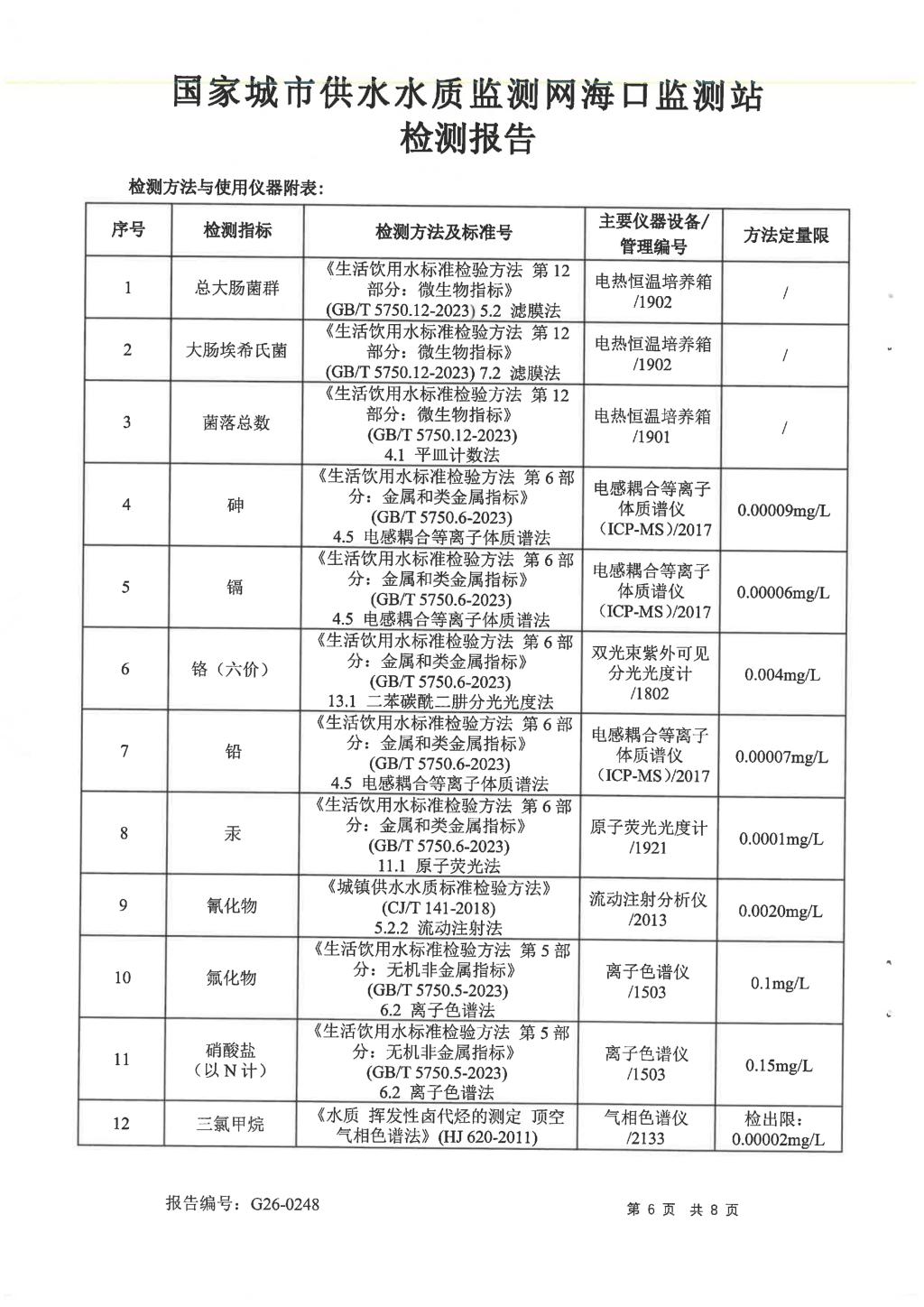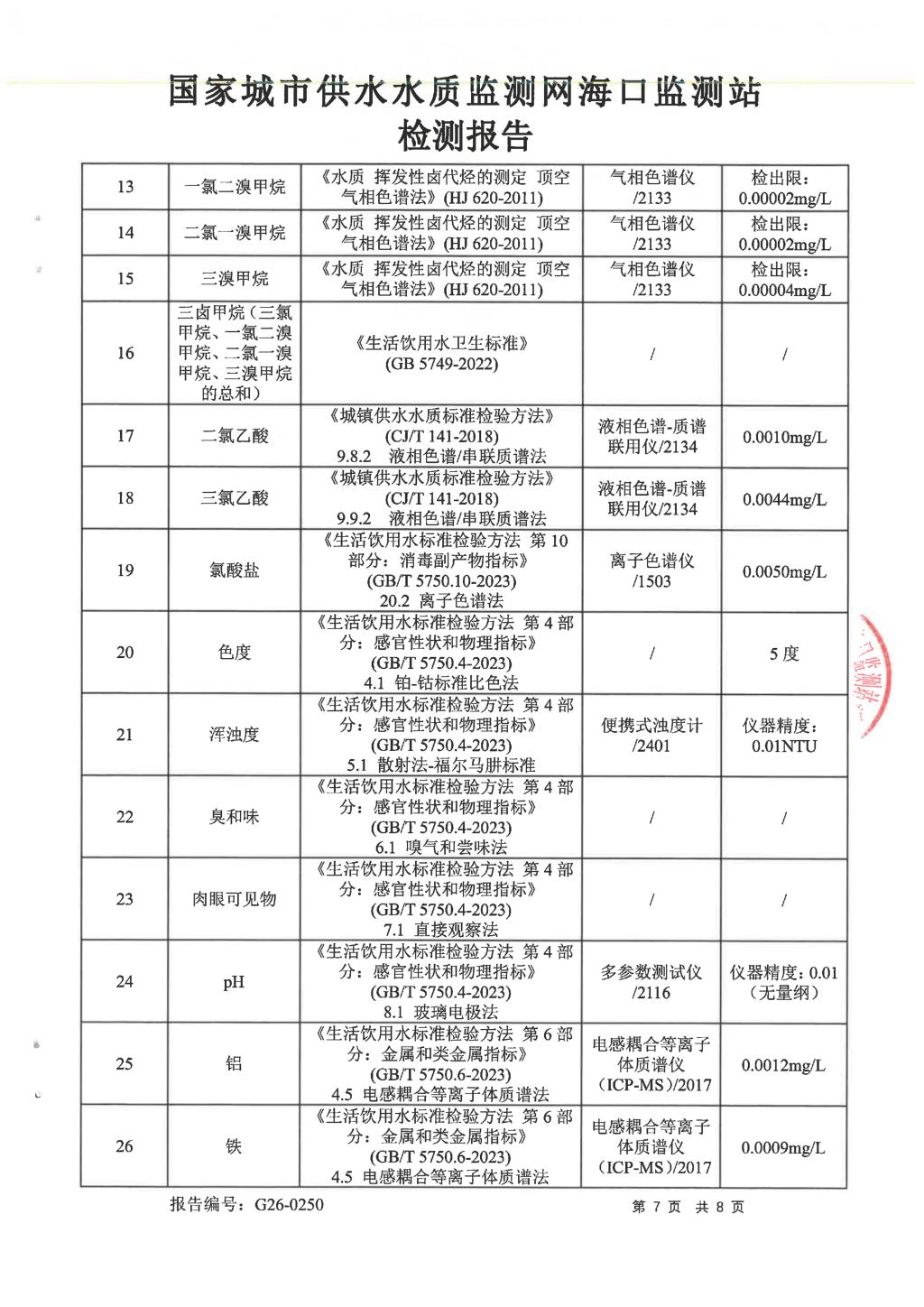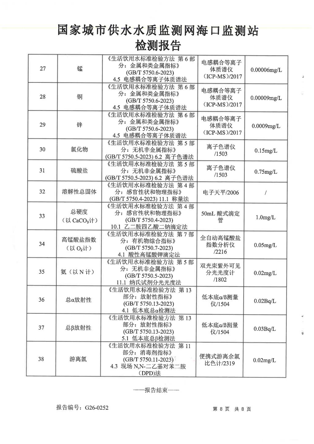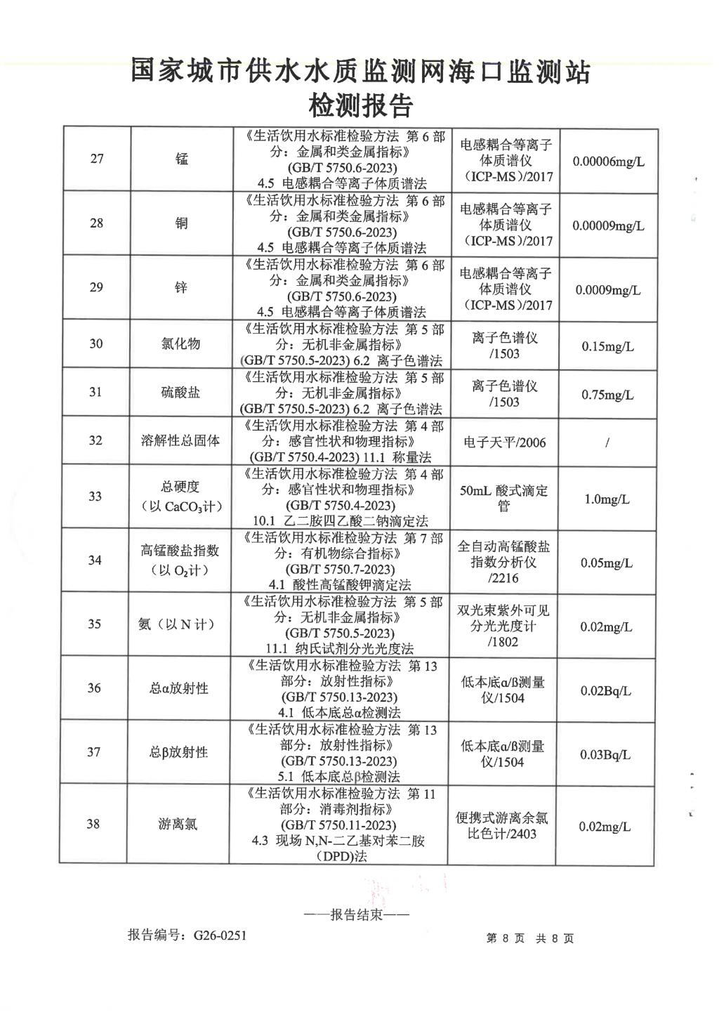 水質(zhì)報告