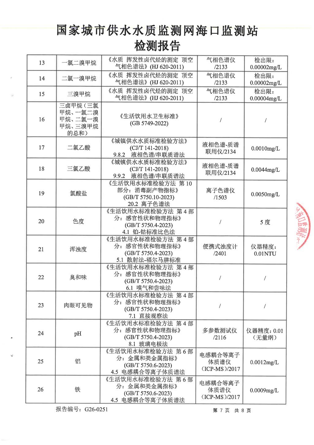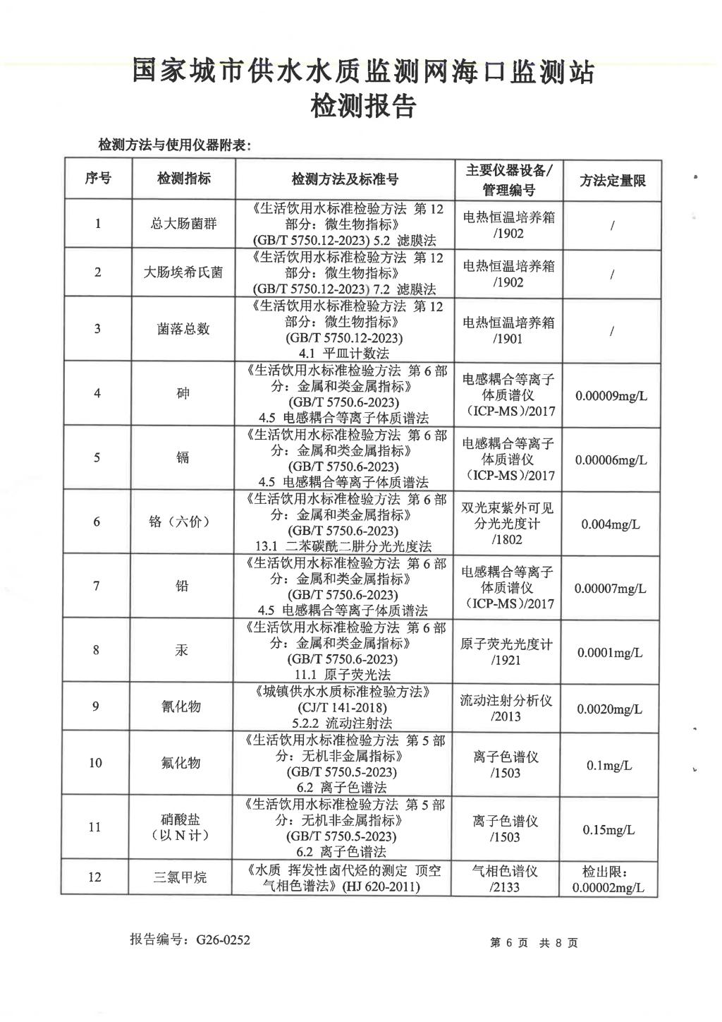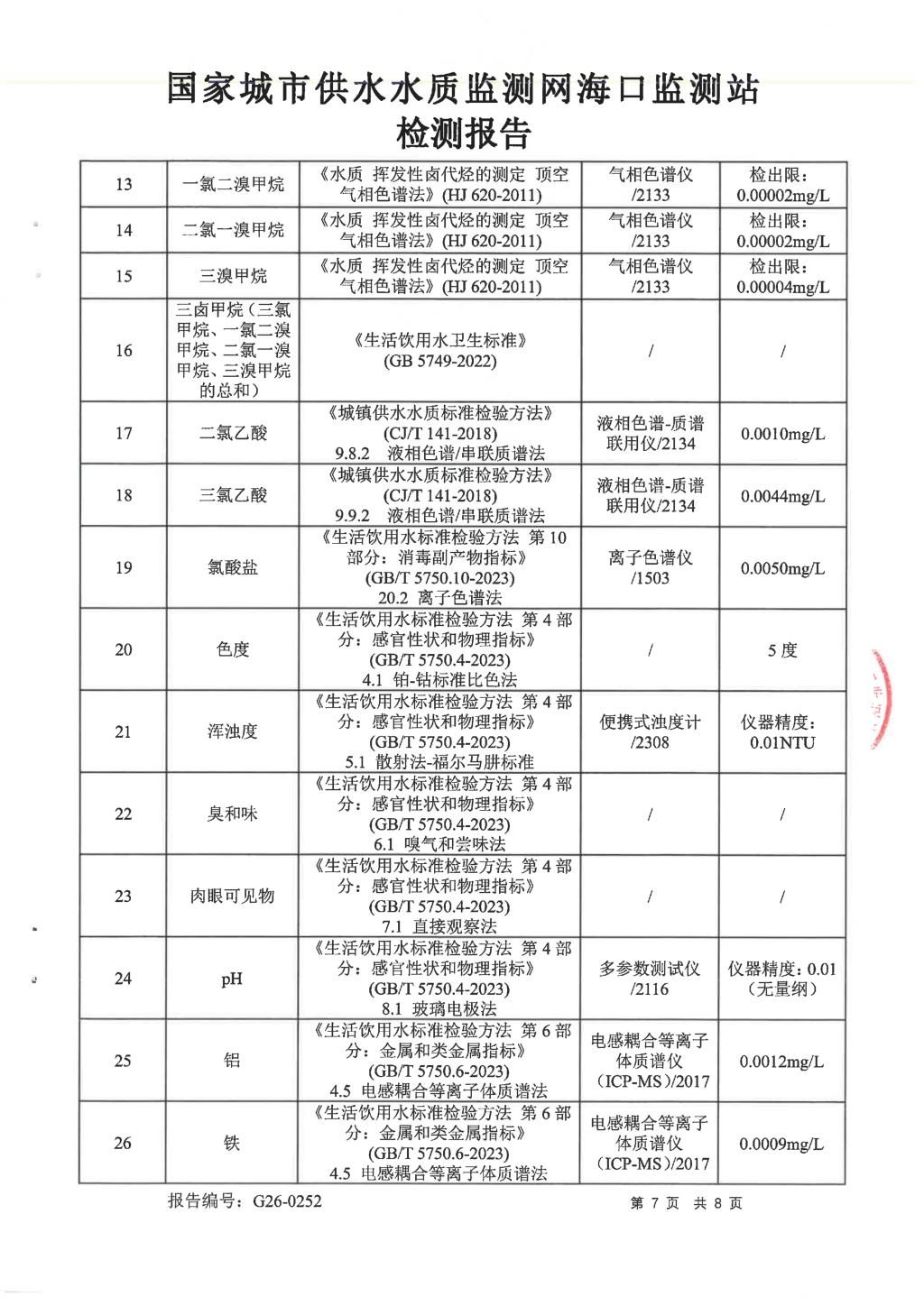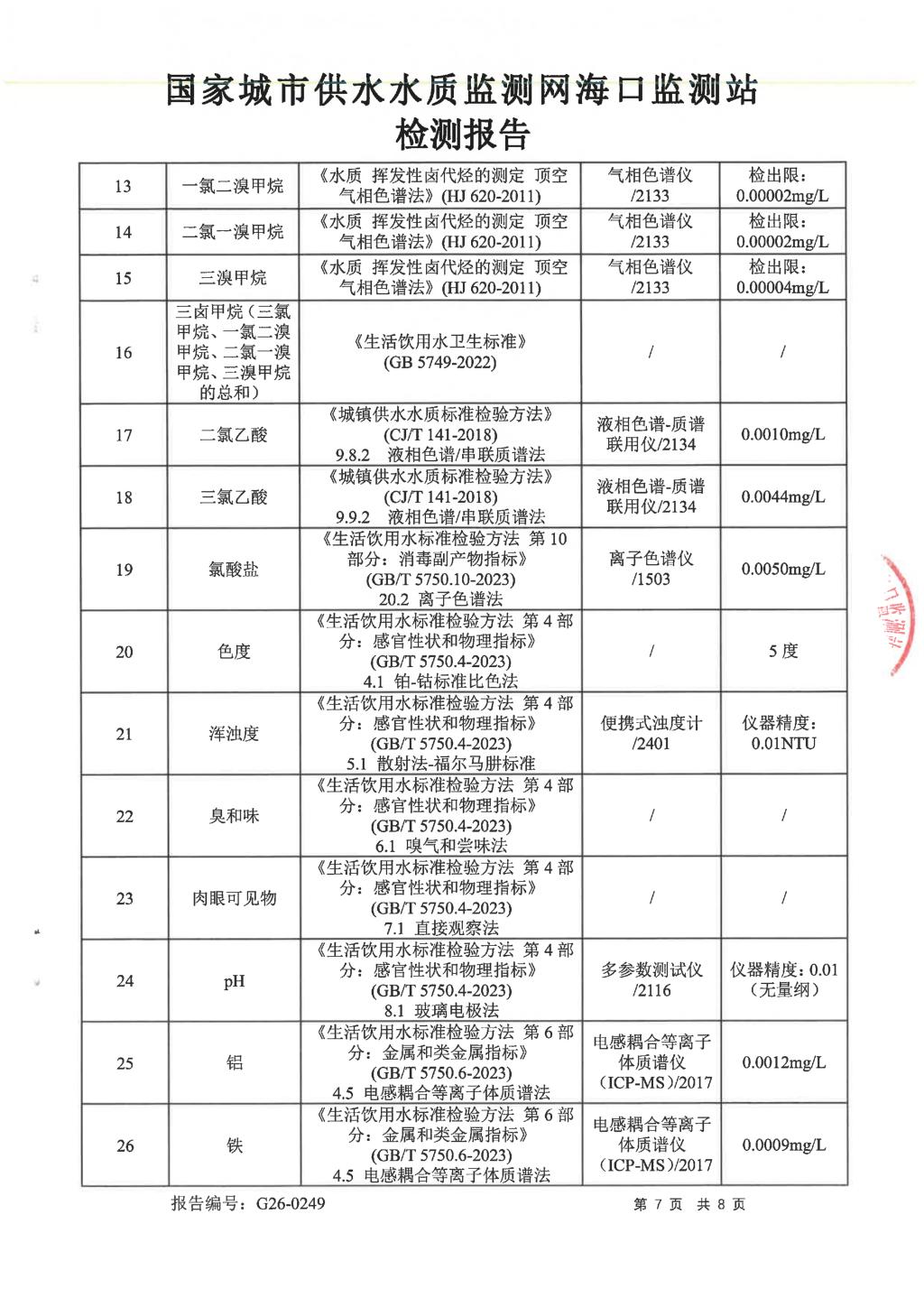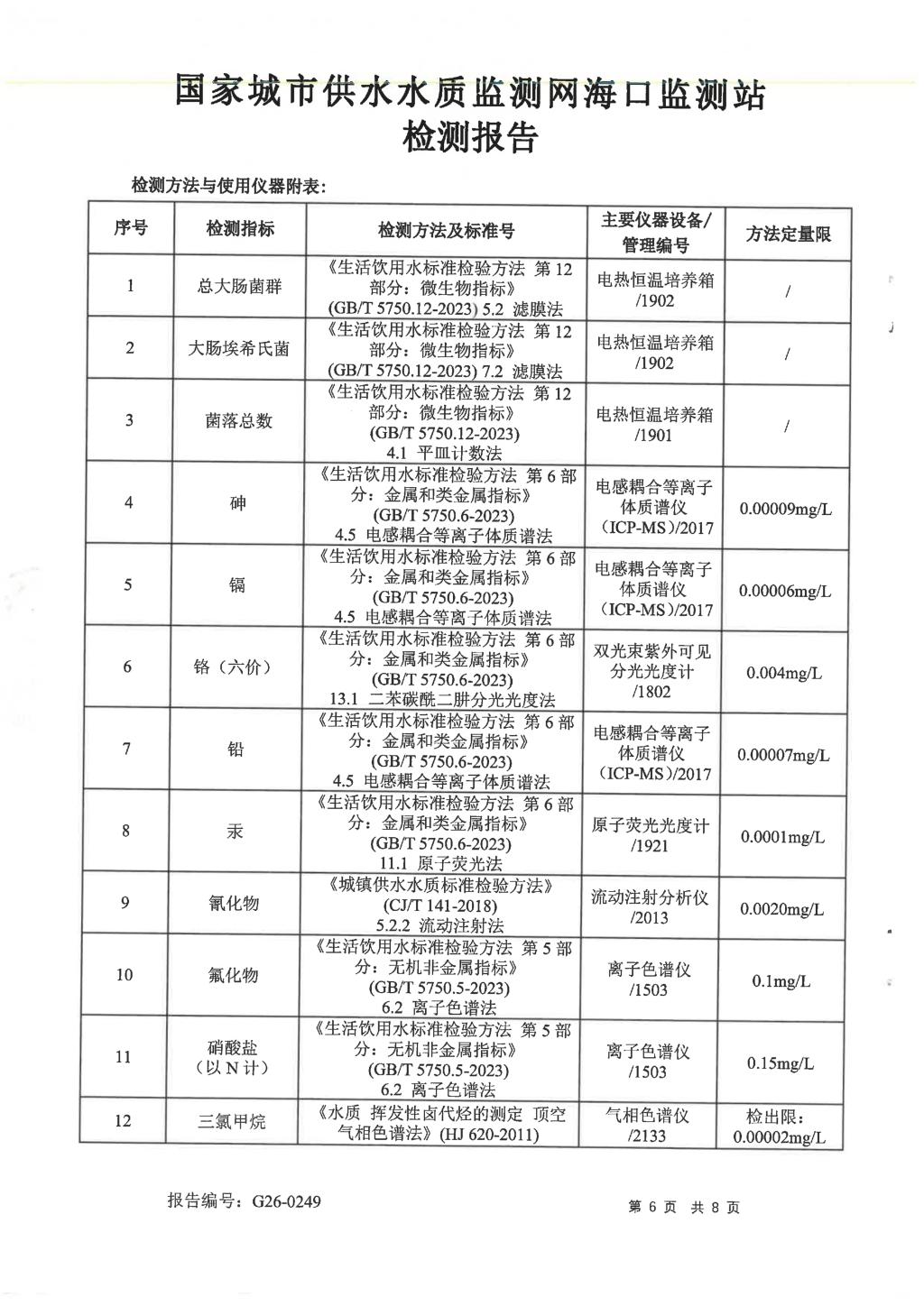 水質(zhì)報告